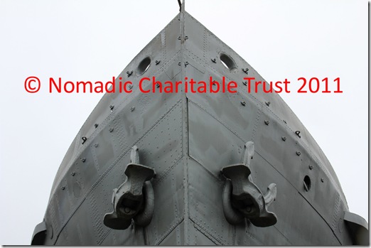 Essas já são fotos mais recentes, que mostram que o trabalho está avançando cada vez mais e que o Nomadic está ficando prontinho para 2012. Podemos ver que o metal e a estrutura do navio foram recuperados e o mais interessante: observe as vigias do navio, é, isso mesmo, estão novinhas em folha!